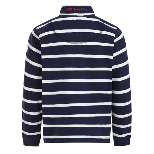 LJ51C - Boys Striped 1/4 Zip Sweatshirt - Marine/Red