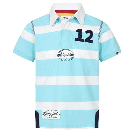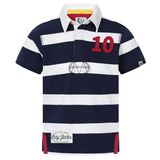 LJ79CE - Boys Striped Rugby Shirt - Deep Sea