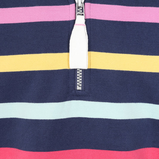 LJ35C - Girl's Striped Quarter Zip Sweatshirt - Twilight