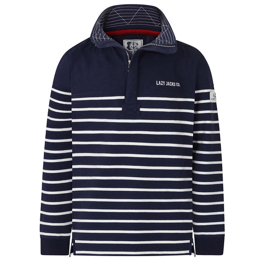 LJ51 - Mens Striped 1/4 Zip Sweatshirt - Marine