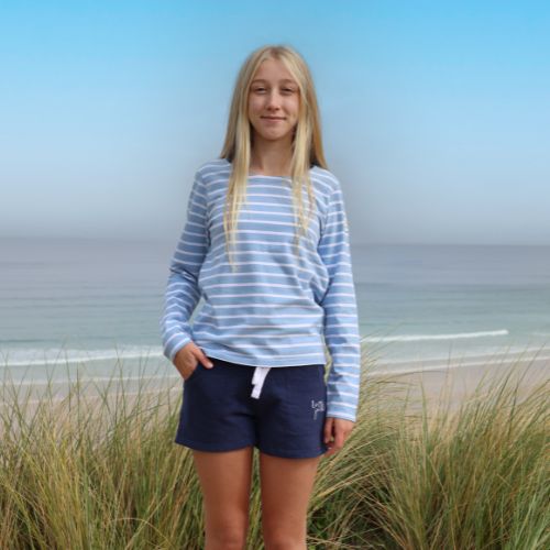 LJ97C - Girls Long Sleeved Striped Breton - Sky