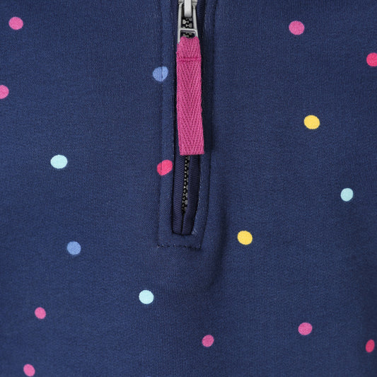 LJ35C - Girls Striped 1/4 Zip Sweatshirt - Polka Dot