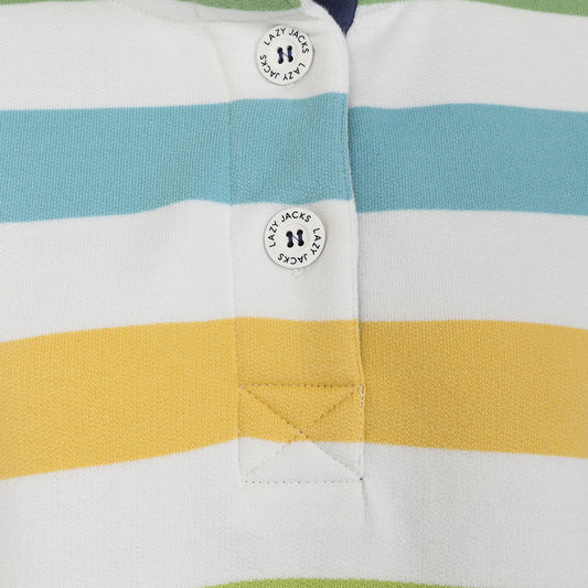 LJ6 - Ladies Striped Button Neck Sweatshirt - Brights