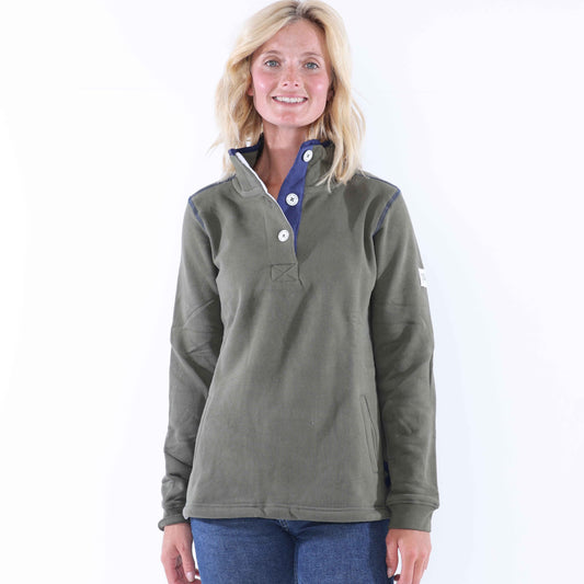 LJ5 - Ladies' Button Neck Sweatshirt - Khaki