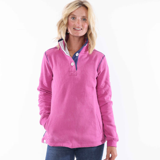 LJ5 - Ladies Button Neck Sweatshirt - Raspberry