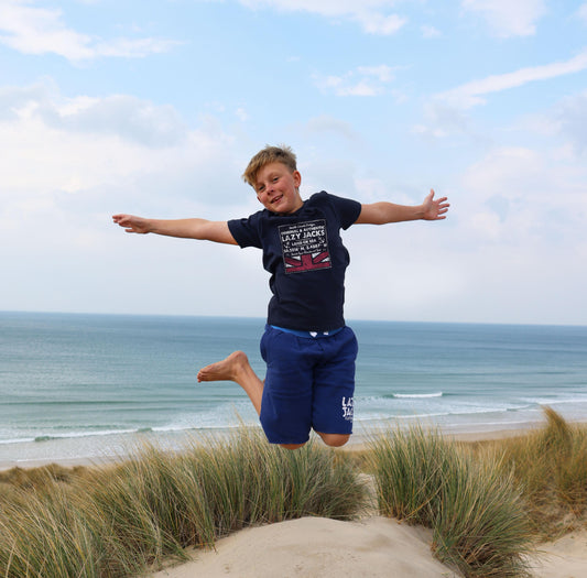 LJ51C - Boys Striped 1/4 Zip Sweatshirt - Marine/Red