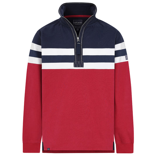LJ51 - Men's Striped 1/4 Zip Sweatshirt - Rouge