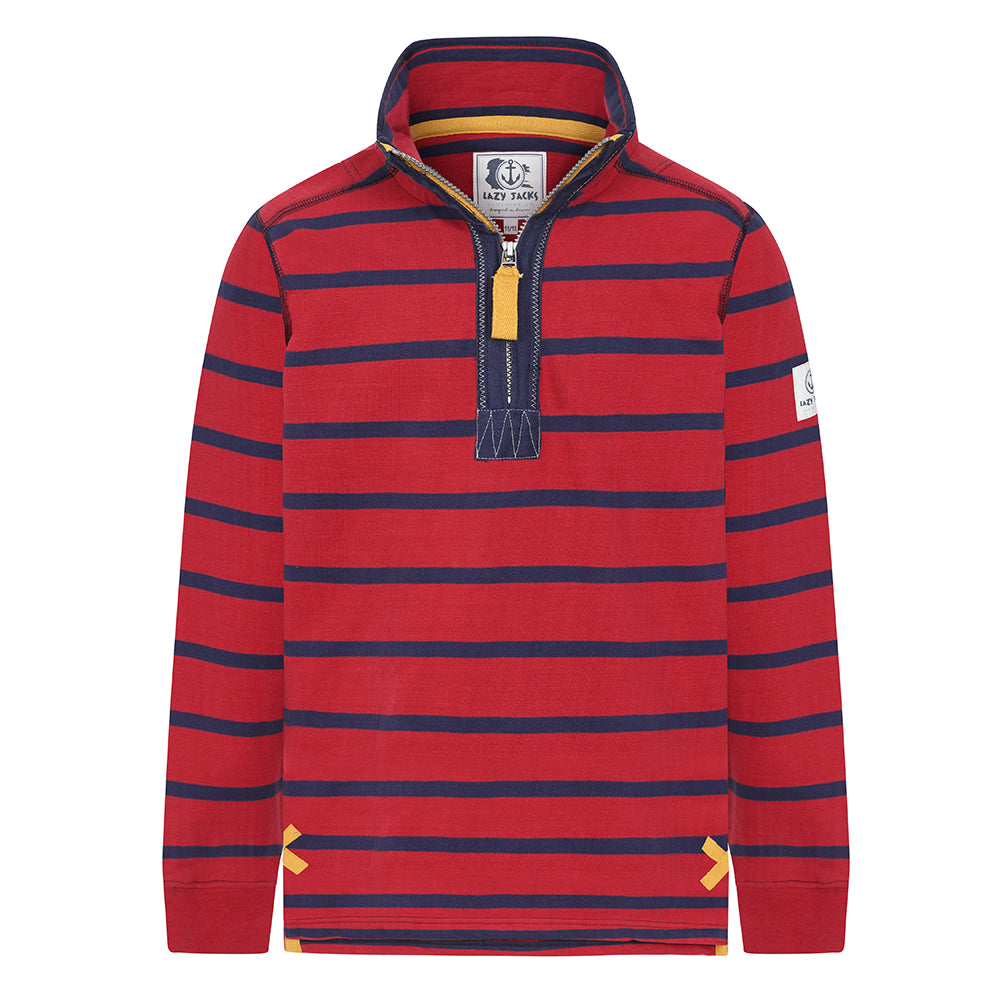 LJ39C - Boys Striped 1/4 Zip Sweatshirt - Red