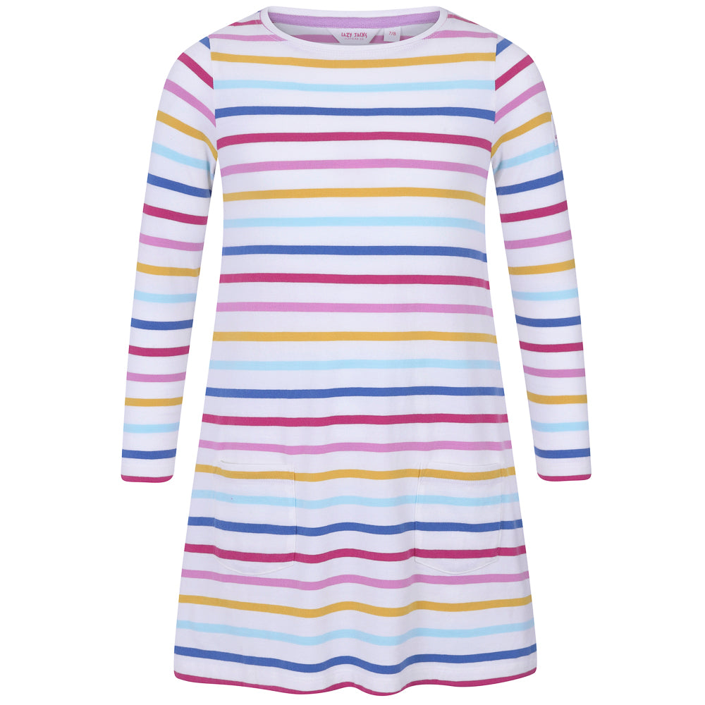 Our girls striped t-shirt dress will become her firm favourite. With long sleeves and made from our super soft cotton this is the perfect dress to take her from day to night. It is easy to dress up or down whatever the occasion.