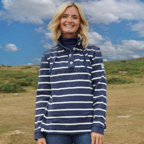 Elevate your casual wardrobe with the Dark Twilight Blue Striped Pique Pullover, designed to add a touch of timeless sophistication to your everyday style. Made from 100% soft cotton with a textured pique feel, this pullover offers a comfortable yet structured fit that’s perfect for layering or wearing on its own. The high collar with a button detail and contrasting white drawstrings gives it a sporty edge, while the white stitching along the seams and hem creates subtle contrast for added style.