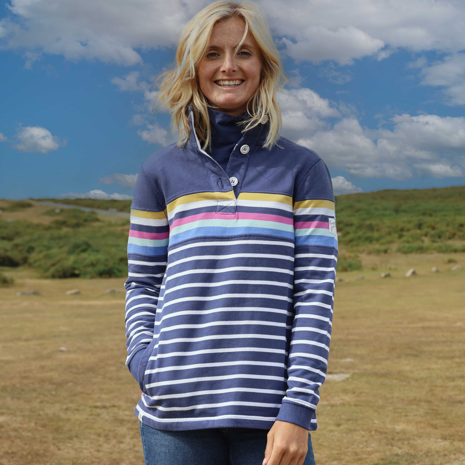 LJ6 - Striped Button Neck Sweatshirt - Prism