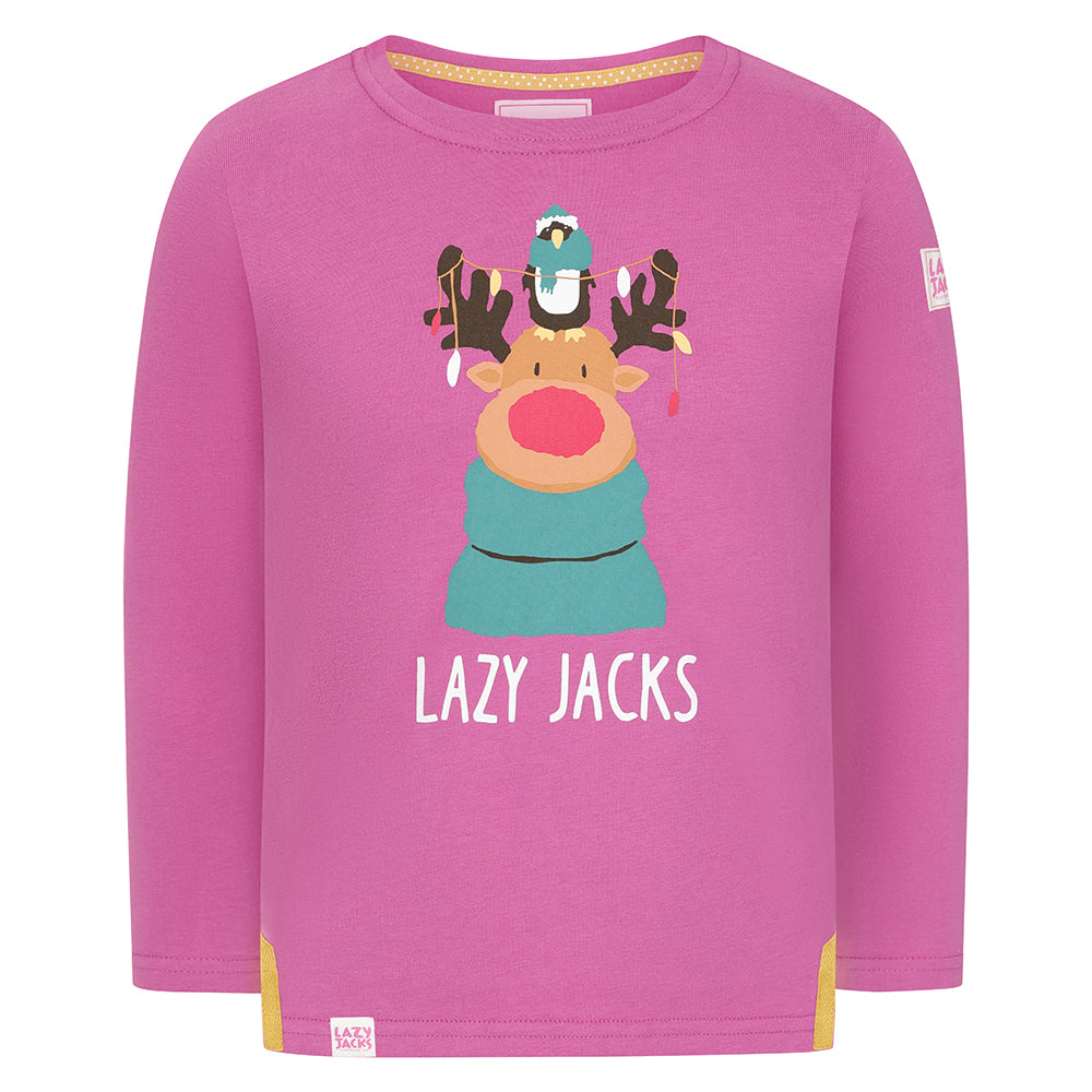 LJ99C - Girls Long Sleeve Printed Top - Raspberry